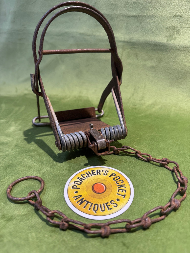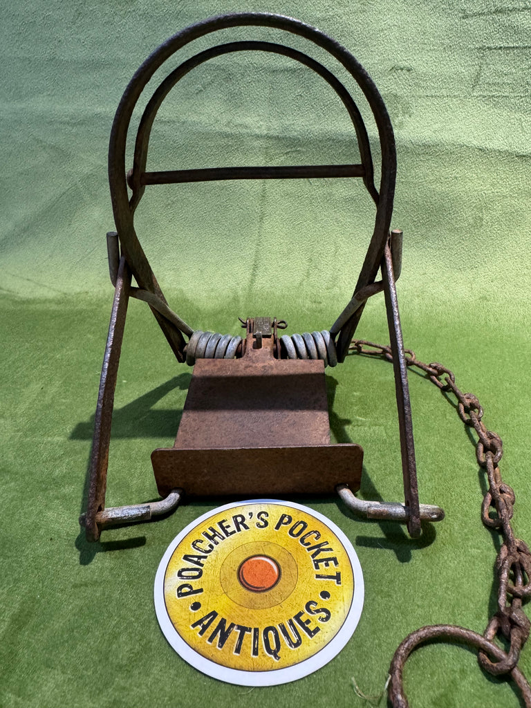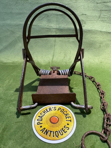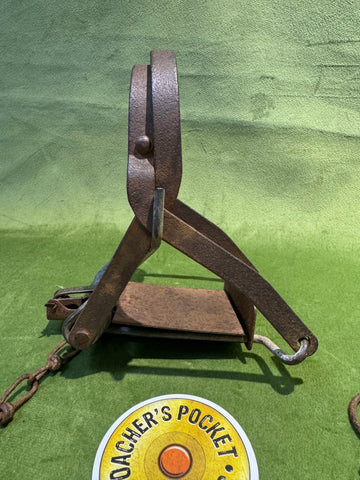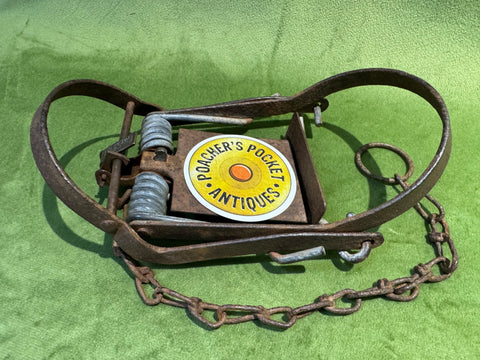 A heavyweight kill trap from the 1970s, with round jaws and original chain.
