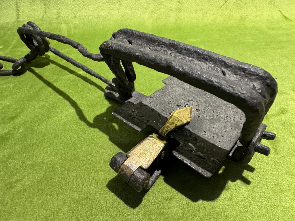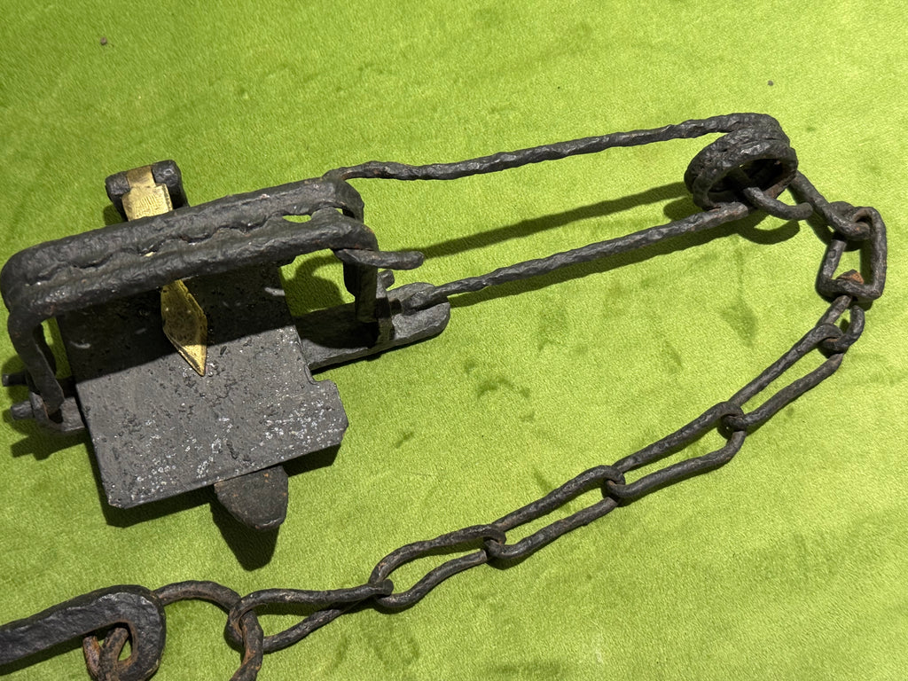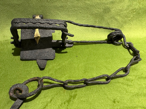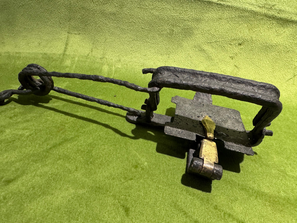 Tough trap to find, patented by Cruickshank, with single wire spring, made to be detachable. This one has pitting and a black painted finish but would be a great gap-filler in your collection and priced accordingly