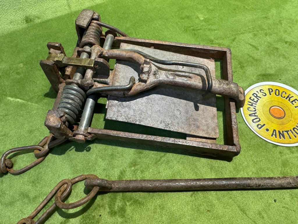 I bought this trap with a load of other traps from a bygones auction about 20 years ago and have never been able to identify it. Looks to have been made from parts of other traps and the spring is very strong indeed.
